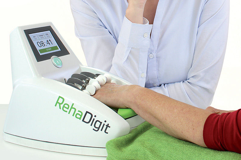 RehaDigit – nodrošina pasīvu pirkstu un plaukstas locītavu mobilizāciju, ierīce maigi un kontrolēti kustina pirkstus, veicot masāžu un stimulējot: asinsriti un limfas plūsmu rokā, muskuļu tonusu un elastību, locītavu kustīgumu un nervu impulsu atjaunošanos. Video šeit